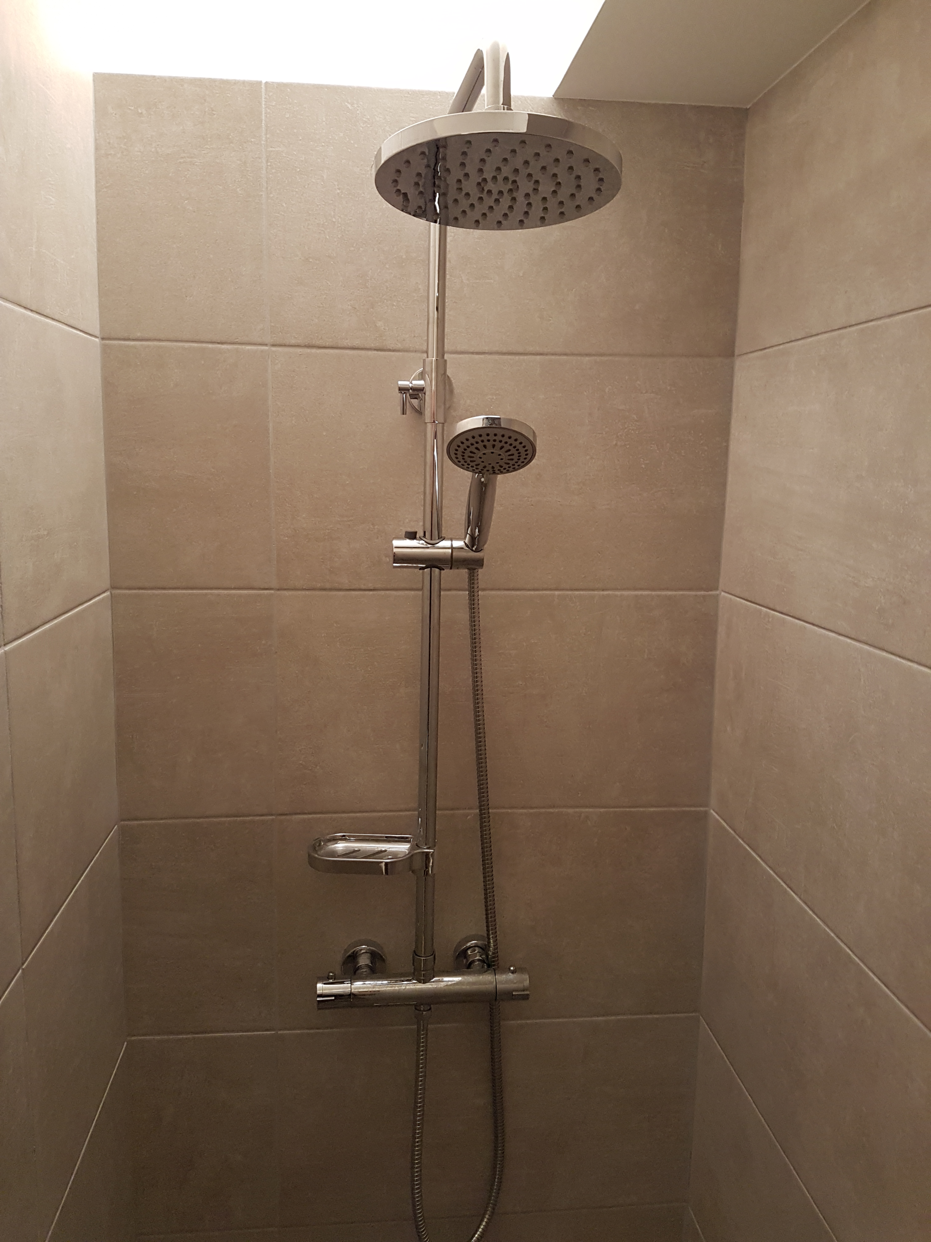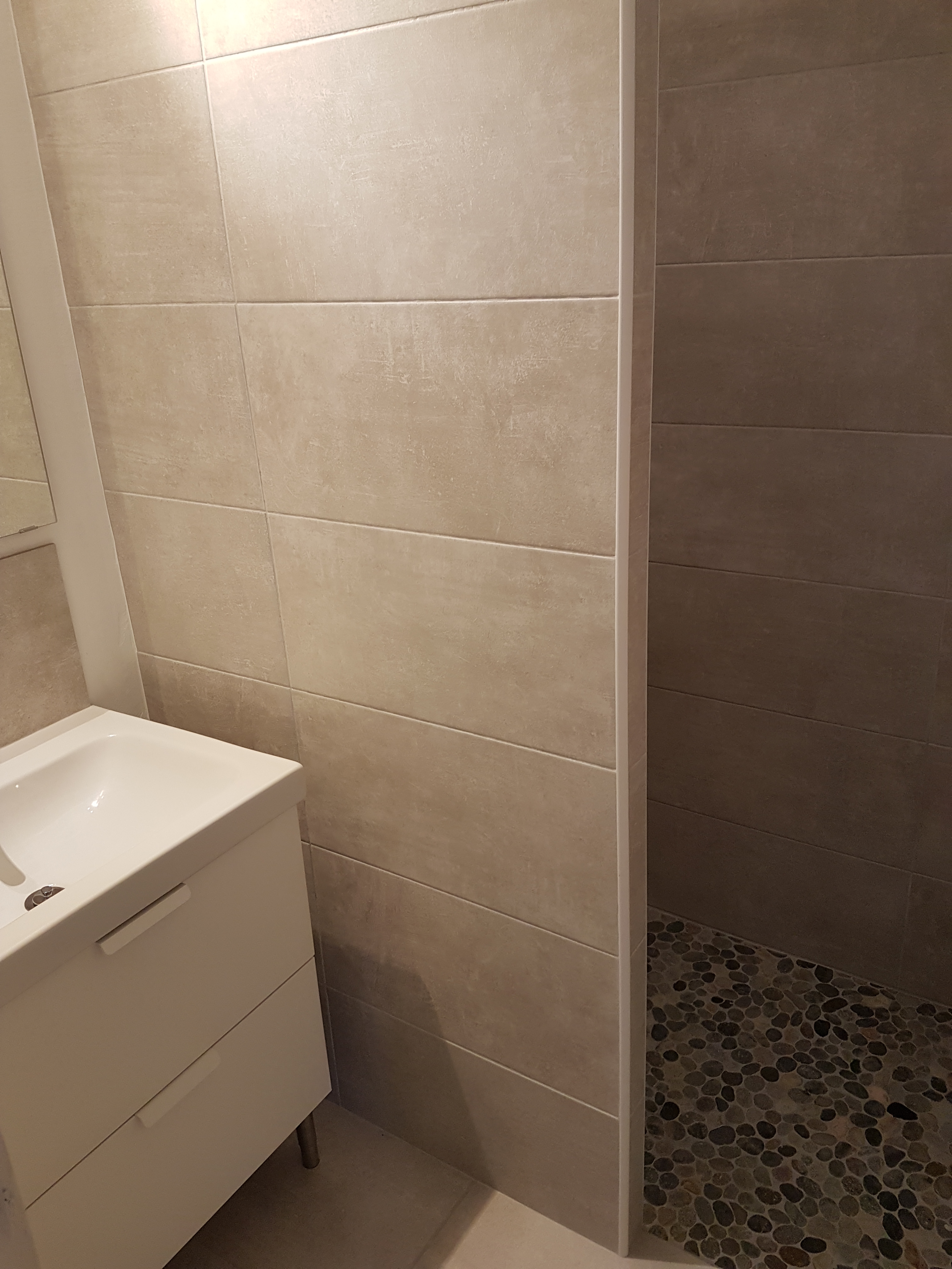 - Salle de bains avec lavabo, douche à l’italienne, armoire de toilette, draps de bain non fournis!
