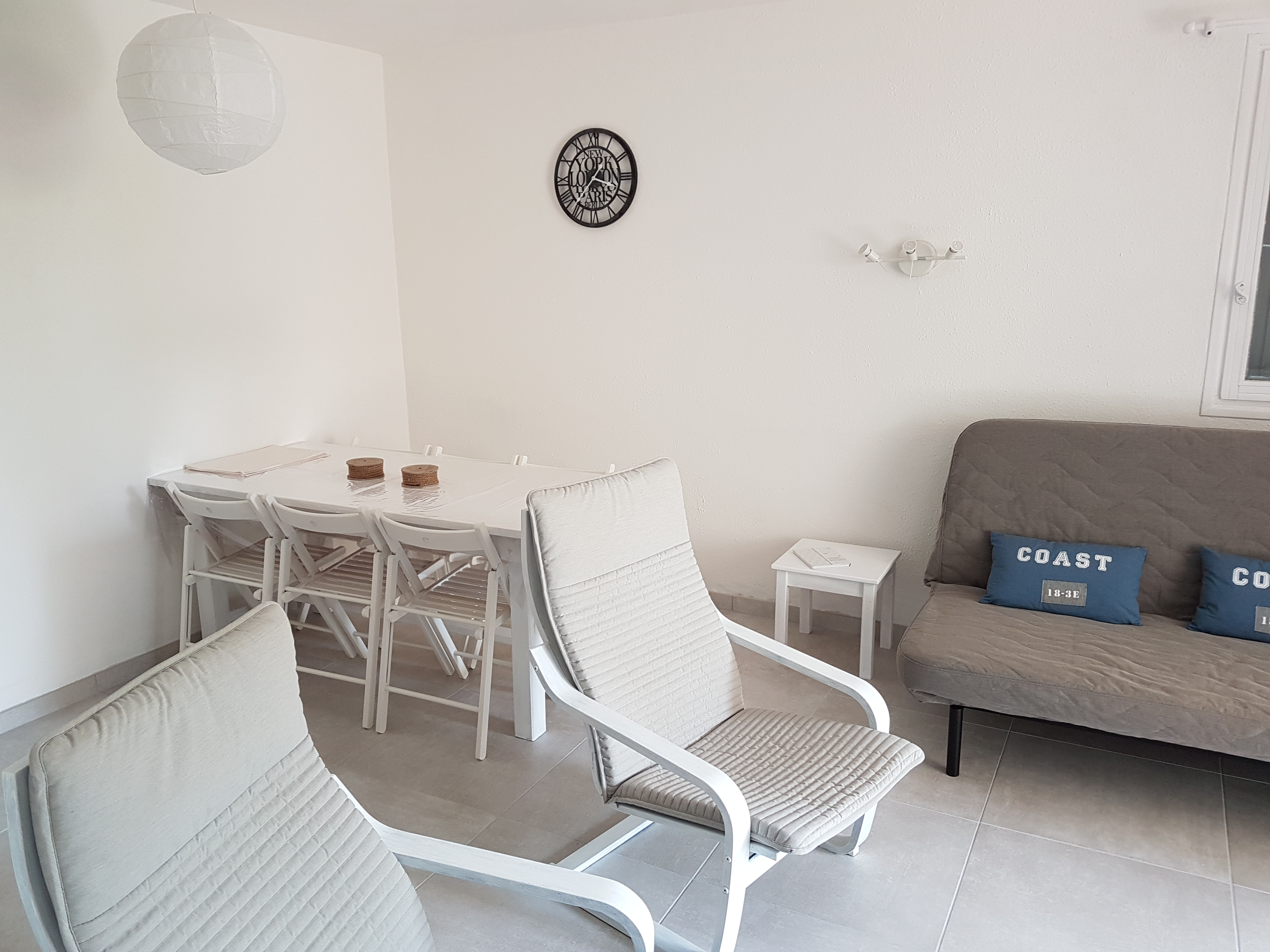 - Une pièce à vivre avec coin repas, salon avec divan lit (2 personnes) TV (chaînes nationales).